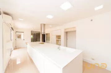 A cozinha, em conceito aberto, é o verdadeiro ponto focal desta residência, está equipada com armários planejados de alta qualidade, proporcionando praticidade e organização. Adjacente à cozinha, encontra-se a área de serviço também com armários planejados, garantindo eficiência no dia a dia.